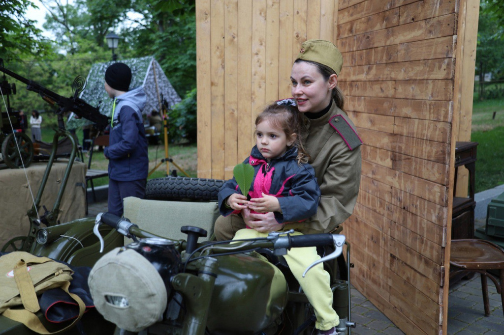 На интерактивной площадке будет представлен мотоцикл периода Великой Отечественной войны, где посетители смогут подойти и сесть за руль, чтобы сделать памятное фото. Дополнительно в зоне плац-театра желающие смогут бесплатно вместе с реконструкторами покататься на мотоцикле БМВ Р-75.