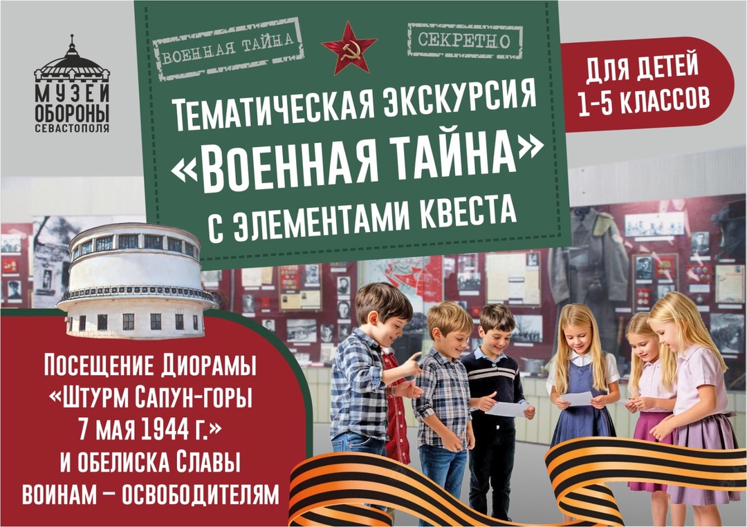 Музей обороны Севастополя приглашает детей 1-5 классов на тематическую экскурсию с элементами квеста «Военная тайна», которая перенесет в героическое прошлое Севастополя.