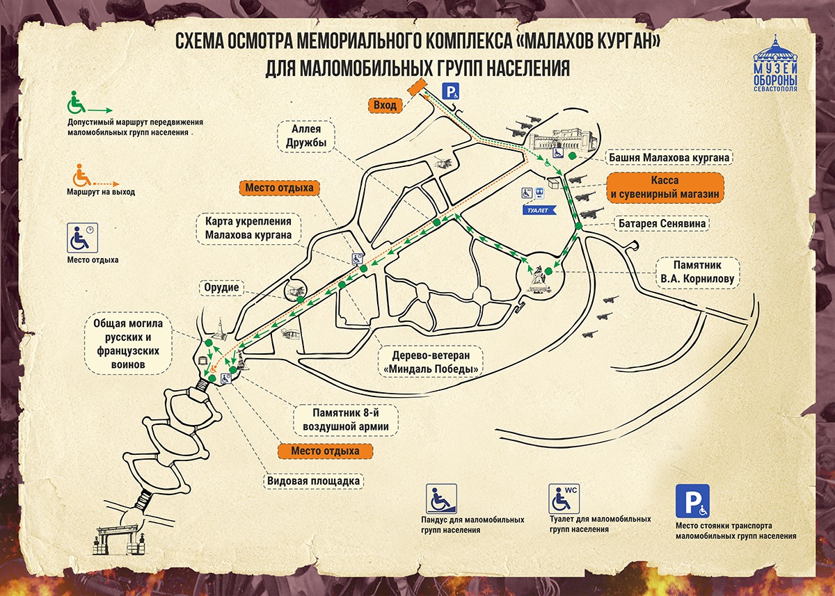 Обзорная экскурсия по Мемориальному комплексу «Малахов курган» (для экскурсантов с нарушениями опорно-двигательного аппарата и передвигающихся на креслах-колясках) Продолжительность – 45 мин. |