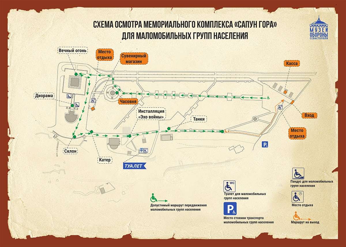 Пешеходная экскурсия по Мемориальному комплексу «Сапун-гора» (для экскурсантов с нарушениями опорно-двигательного аппарата и передвигающихся на креслах-колясках) Продолжительность – 1 ч 10 мин |