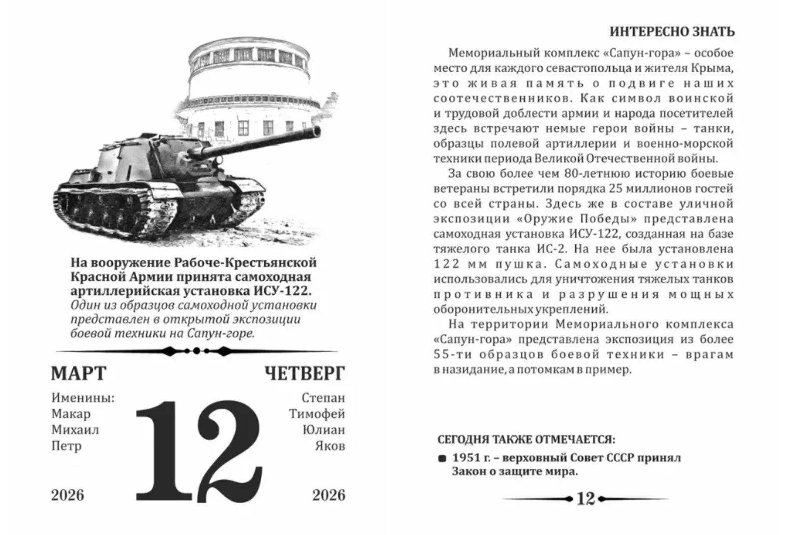 Календарь, 12 марта