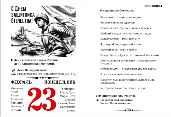 Календарь, 23 февраля