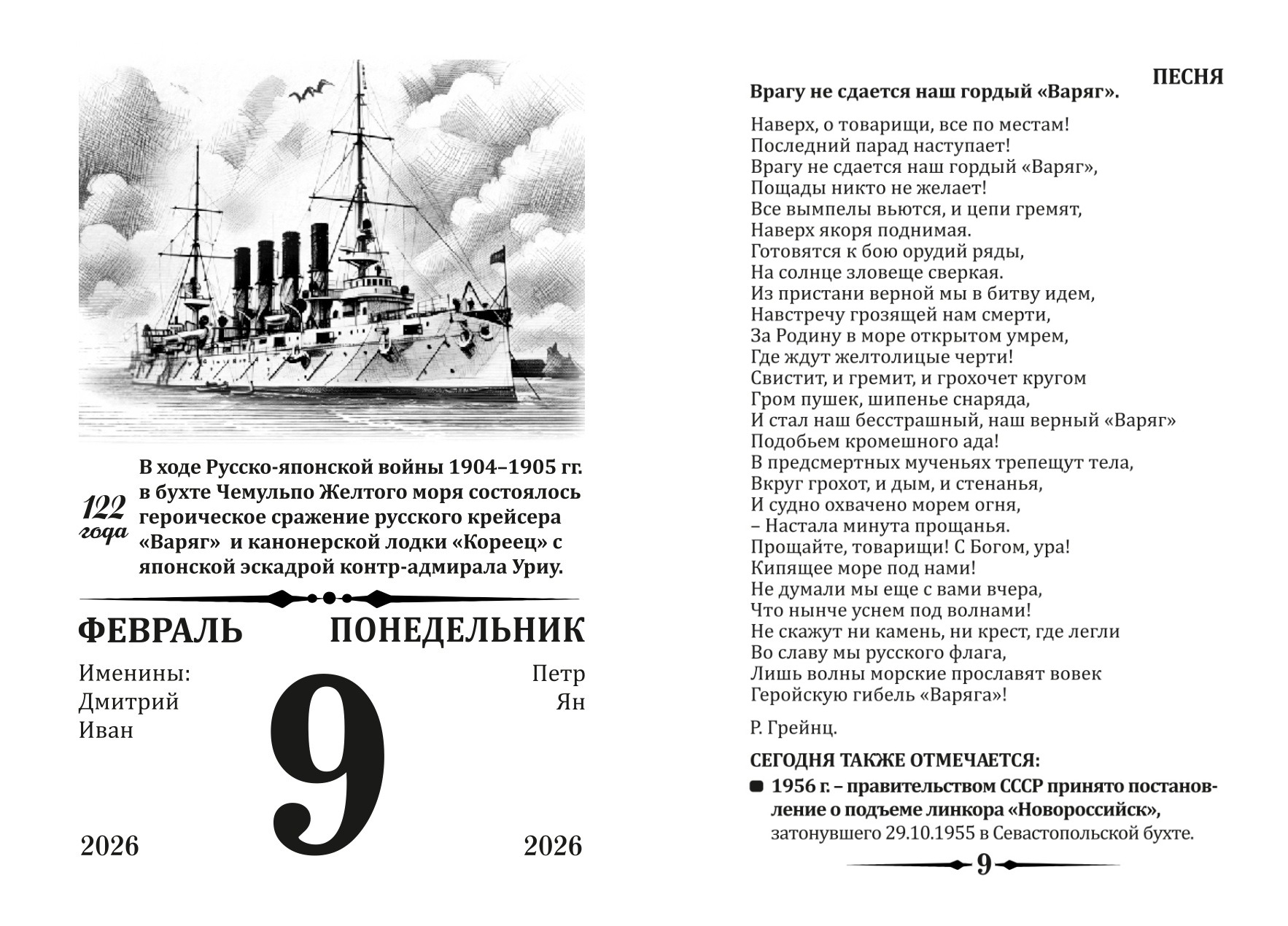 Календарь, 9 февраля