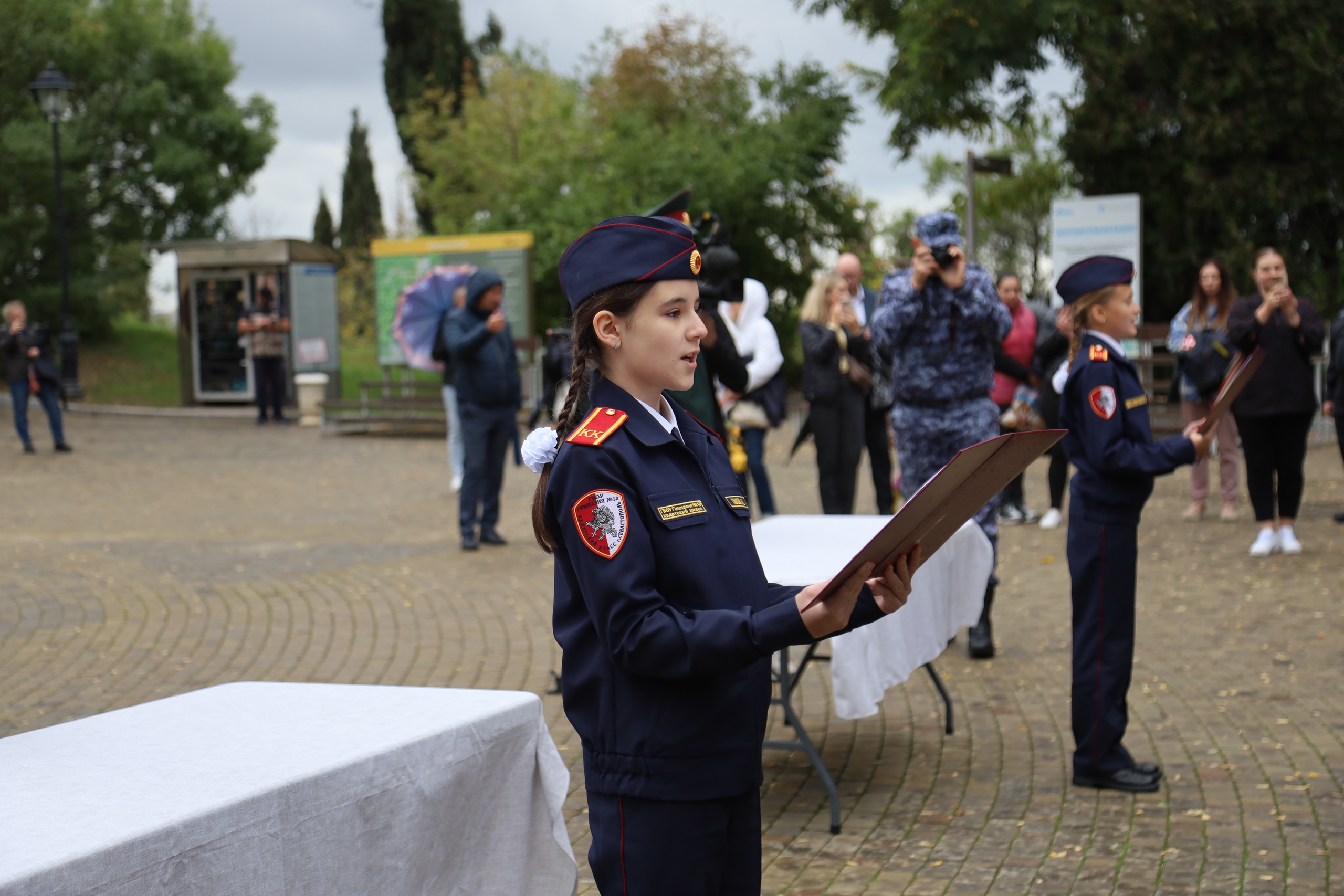 Добрые напутственные слова сказала кадетам заведующий отделом культурно-просветительной работы Музея обороны Севастополя Оксана Неграш: «Вы сегодня вступили в благородную семью защитников Отечества. Желаю вам, как у вас и написано в клятве, обрести крепкую, сильную, настоящую дружбу. И обязательно хорошо учиться, особенно важно знакомиться с историей Родины и нашего Города-Героя Севастополя, чтобы понять истинное предназначение защитника Отечества»