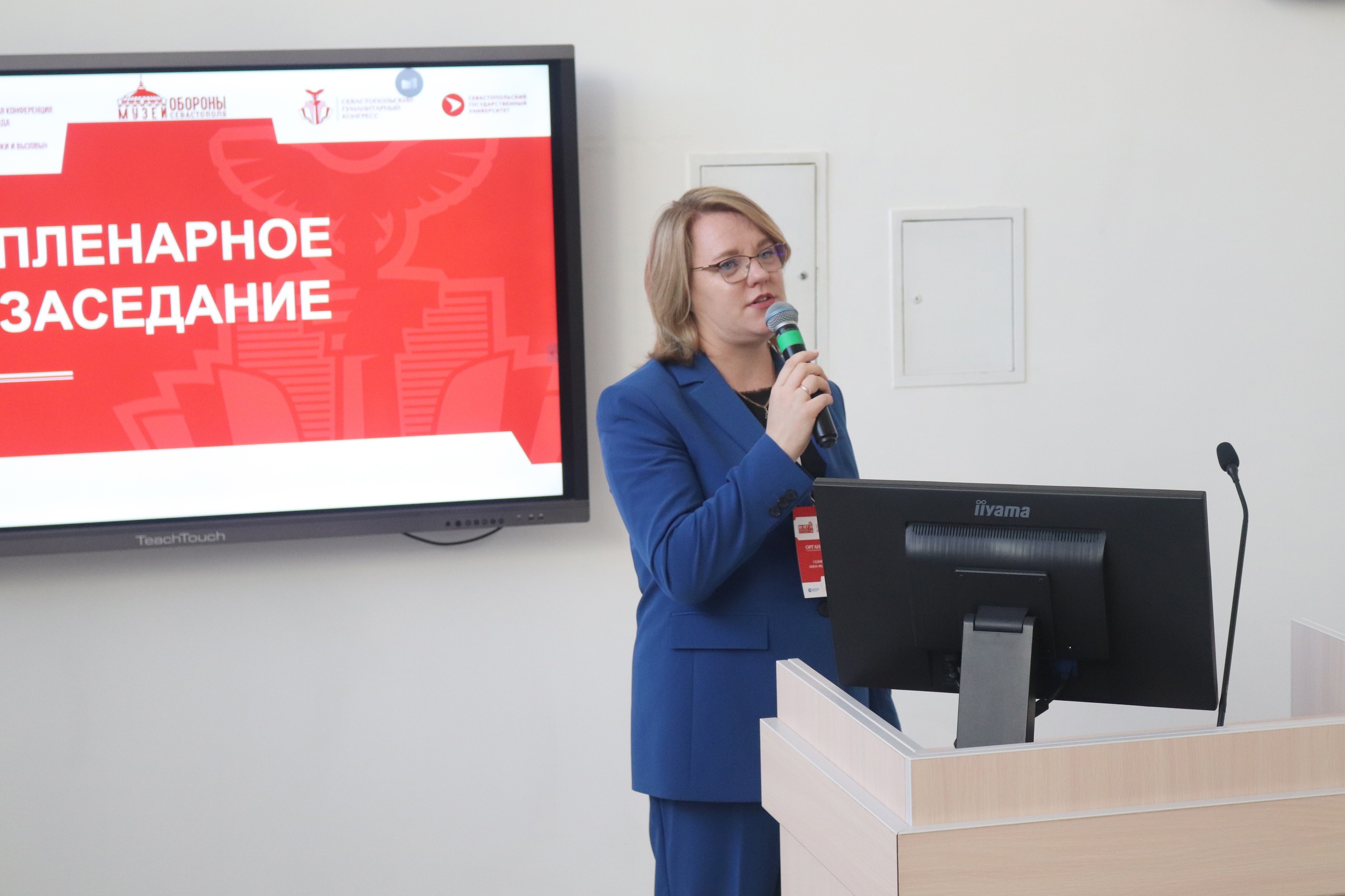 Ирина Юрьевна Агишева, заведующая отделом «История Великой Отечественной войны 1941–1945 гг.» Музея обороны Севастополя, выступила с докладом «1944–2025. Преемственность поколений (воинские формирования в боях за Севастополь и в Специальной военной операции)».